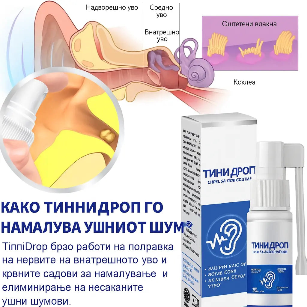 СПРЕЈ ЗА ТИНИТУС – ЗА ОТСТРАНУВАЊЕ НА ЗВУЦИ И ЦЕРУМЕН ОД УШИТЕ
